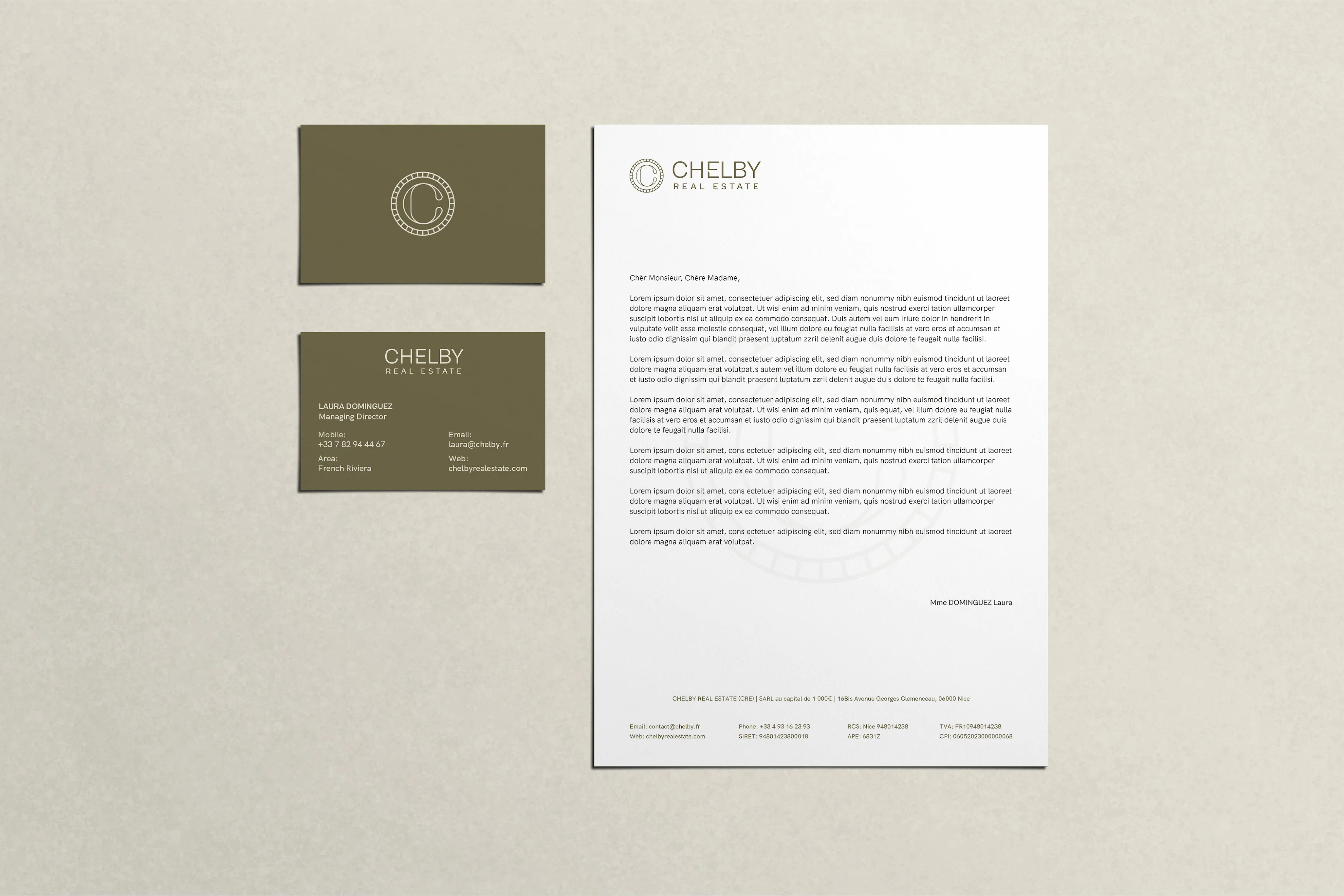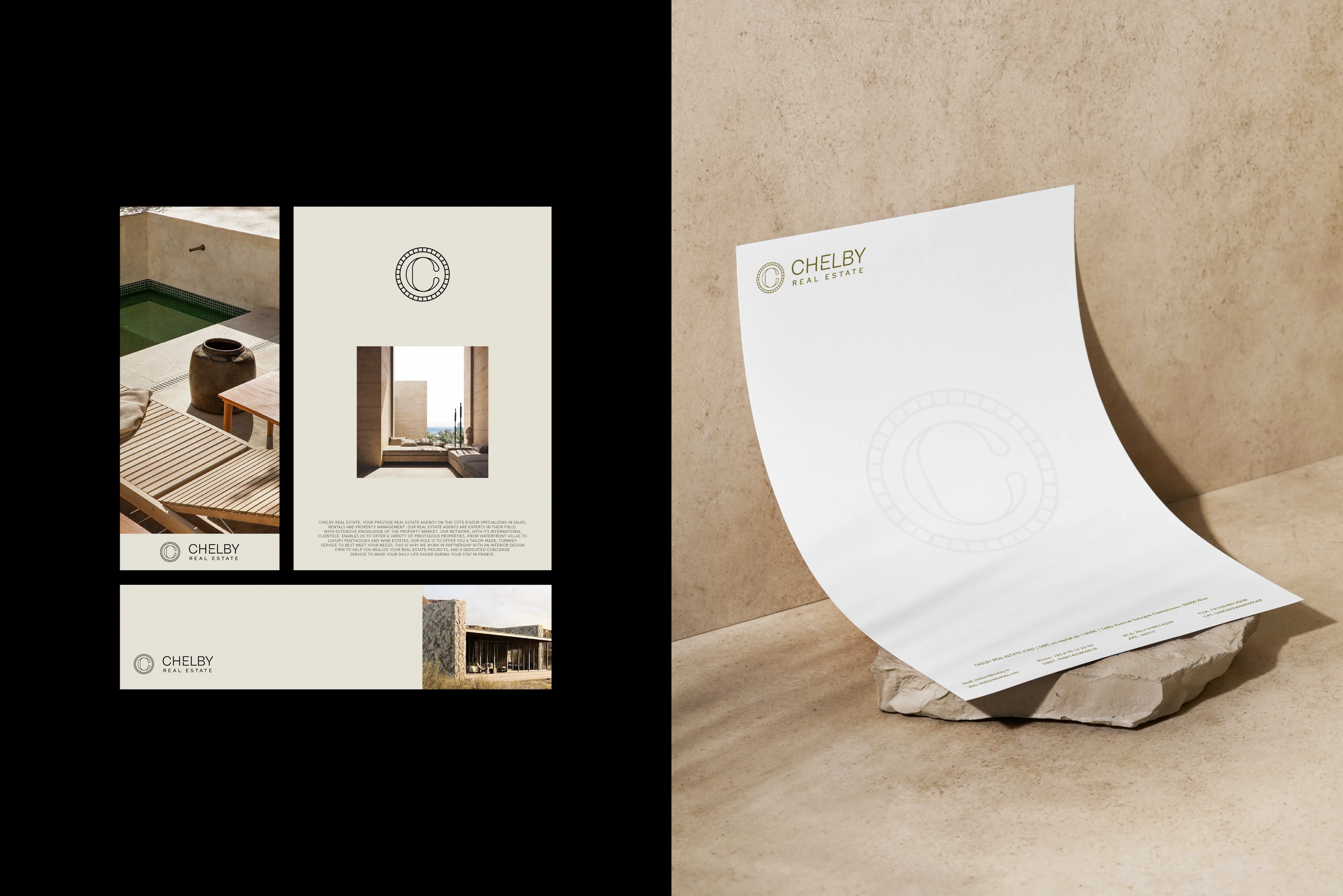 Pour Chelby Real Estate, agence immobilière de la Côte d’Azur, nous avons réalisé une refonte totale de leur identité visuelle.
